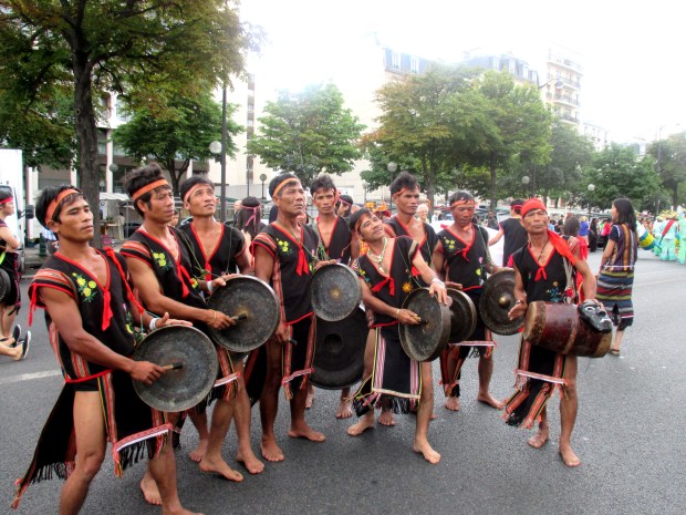 « Ba tháng nay đoàn mình đã chuẩn bị cho gần một tháng lưu diễn tại Pháp rồi. Cả ngày hoặc nửa ngày đi làm nương rẫy, tối về tập cồng chiêng. Nghe đến Paris thì nhiều rồi nhưng mới lần đầu tiên đến đây. Tưởng xa bản làng mà không phải, đến đây thấy trai bản, gái bản ở hết đây rồi…« – Nghệ nhân A Thut, người dân tộc Ba Na, thành viên đoàn Cồng chiêng Tây Nguyên nhìn chúng tôi cười thích thú.