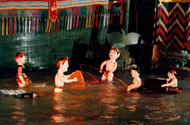 Les marionnettes sur eau (Hanoï) sont les héritières d’une tradition ancestrale : le mua roi nuoc. Reconnu dès 1121, adoubé par le roi pour sa perfection, cet art est né au nord du Vietnam où l’eau prédomine et règle les cycles de la vie des paysans et des pêcheurs. Depuis toujours, les marionnettes sont un spectacle populaire qui met en scène les travaux et les jeux des villageois. Pendant de nombreux siècles, les paysans ont gardé jalousement le secret de la manipulation des poupées, qu’ils ne transmettaient qu’aux membres de leur famille. Par la suite, des troupes professionnelles ont développé cet art dans les théâtres urbains.