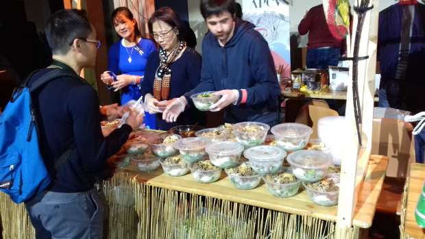 Trong phòng bếp, không khí lại càng nhộn nhịp, sôi động, chị Anh Tú, hội viên của Về Nguồn cho biết : « Ban ẩm thực chúng tôi đã chuẩn bị 25 món ăn khác nhau cho khoảng hơn 1000 người, tức phải làm 200 phần cho mỗi món. Ngoài ra Chi hội Về Nguồn cũng đóng góp về các trò chơi dân gian cho các cháu thiếu nhi và làm các phong bì lì xì. Số tiền thu được sẽ dùng để xây trường, xây phòng học tại Việt Nam. Đặc biệt cho phần văn nghệ, chúng tôi đã nhiều tháng trời, giải thích nội dung và dạy cho các em học thuộc các câu thơ của Nguyễn Trãi trong Bình ngô đại cáo. Cho bữa ăn hôm nay, chúng tôi đã chuẩn bị từ hôm qua để đi chợ mua nguyên liệu, từ 6g00 sáng hôm nay thì bắt đầu nấu nướng, tổng cộng có gần 700 anh chị em tình nguyện đã sắn tay lên. Có lẽ đến 4g00 sáng ngày mai mới dọn dẹp xong.