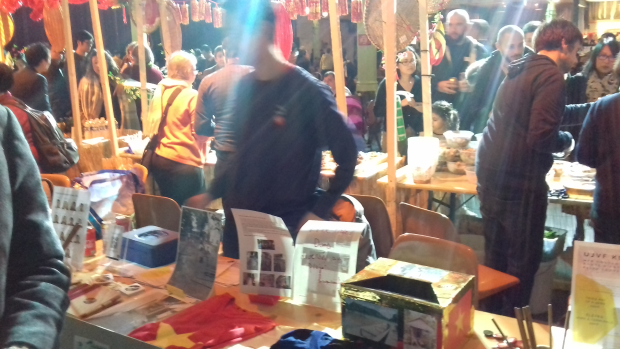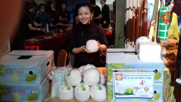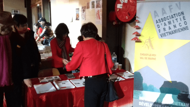 Chị Phương Nhi, người Hà Nội, du học sinh năm thứ 2 tại Đại học Paris Descartes (Paris 5) ngành Tâm lý học tâm sự : « Cuộc sống bên này không như ở Việt Nam, trong trường không có bao nhiêu người Việt nên cháu đã tham gia vào Hội sinh viên Việt Nam tại Paris (UEVP). Hội đoàn chúng cháu có gắn bó mật thiết với HNVNTP và thường xuyên giúp HNVNTP trong các sự kiện lớn, nhất là về nhân sự. Tết năm nay, chúng cháu trông coi các gian hàng trong khu chợ Tết, riêng cháu tham gia vào Ban tổ chức của phần Underground Party để các bạn sinh viên chúng cháu cùng nhau ca hát và khiêu vũ. Ngoài một số tiết mục đã có chuẩn bị, phần lớn là sự giúp vui ngẫu hứng của các bạn ». Quả nhiên vậy, ở tầng hầm, chúng tôi ghi nhận không khí thật là thoải mái, vui nhộn, rất nhiều bạn trẻ đã « xin » micro lên hát những bản nhạc Việt có, ngoại quốc có. Được biết, UEVP cố gắng kết nối giữa du học sinh Việt Nam tại Paris, hỗ trợ nhau trong học tập, trong cuộc sống, tổ chức các lớp hướng nghiệp, làm CV cho sinh viên đi xin việc làm, v.v.…