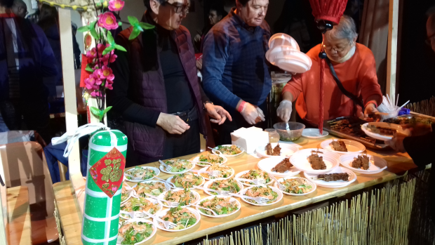 Ngoài ra, chợ Tết gồm hàng chục gian hàng bán các món ăn truyền thống Việt Nam như giò thủ, bánh chưng, bánh bèo, bánh cuốn, chả giò, các loại gỏi, phở… được bày biện sạch sẽ, với giá phải chăng.