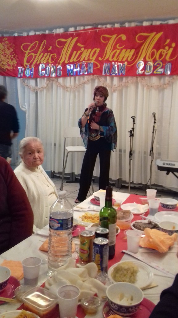 Để góp vui cho chương trình là bài Táo quân « năm nào cũng không thể thiếu » của anh Quang Trung, hội viên lâu đời từ Orsay sáng tác. Sau đó là phần văn nghệ do chị Hà Mỹ Liên đảm trách, đệm nhạc organ do phu quân của chị. Nhiều giọng ca « sồn sồn », quen thuộc của Tết công nhân cũng có mặt. Với những bài hát xuân, với giọng ca dù không chuyên nghiệp nhưng hơn bình thường rất nhiều và nhất là cái tình trong giọng hát, các anh chị đã đem đến người nghe không khỏi ít nhiều cảm xúc. Riêng với phóng viên tôi, thích nhất là bài « Giọt nắng bên thềm » do anh Thái Quang Nam trình bày.
