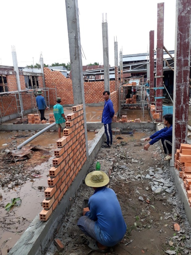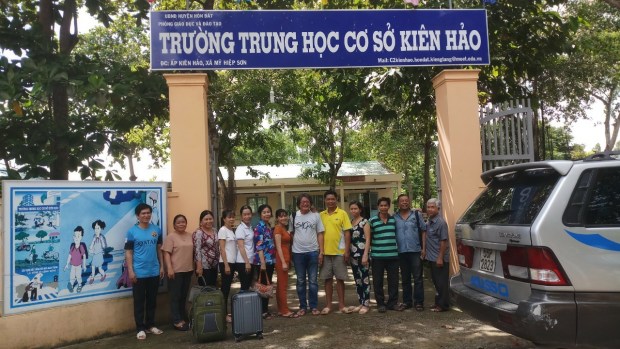 Chúng tôi chọn nơi để giúp đỡ là trường tiểu học Kiến Hào, thuộc huyện Hòn Đất, tỉnh Kiên Giang, cách Rạch Giá khoảng 30 km. Trường có 10 lớp học với 470 em học sinh. Anh em chúng tôi đã trực tiếp liên hệ với các nhà thầu tại Việt Nam để có được đối tác tin tưởng nhất và cho giá tốt nhất về công trình xây dựng. Số tiền đóng góp là 8000 €, sau đó được bổ sung thêm 5000 €, quy ra tiền Việt là 350 triệu đồng. Còn 8 lớp đang trong tình trạng xuống cấp, sơn bị tróc, tường bị hư hỏng, bàn ghế quá thô sơ, thành ra chúng tôi mong muốn tiếp tục đợt 2 cho trường. Về chương trình này, có khoảng 30 anh chị em trực tiếp tham gia bằng cách đi quyên góp từng người, từng gia đình và khoảng 70 người lo về các mặt khác ».