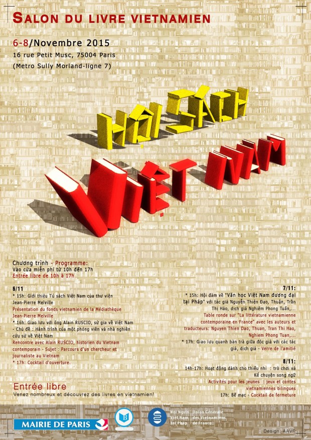 15h: Hội đàm về « Văn học Việt Nam đương đại tại Pháp » cũng như kinh nghiệm viết, dịch với tác giả và dịch giả: Nguyễn Thiện Đạo, Thuận, Trần Thị Hảo, Nghiêm Phong Tuấn,…