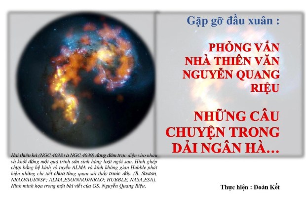 Chúng tôi xin giới thiệu đến độc giả nội dung của buổi trò chuyện rất bổ ích và thú vị này – trong đó, độc giả sẽ được gặp không chỉ nhà thiên văn học Nguyễn Quang Riệu, mà còn là một tâm hồn yêu văn học nói riêng và văn hóa Việt Nam nói chung, một tư duy sư phạm tài năng trong việc phổ biến, giải thích những kiến thức thiên văn chuyên sâu theo cách rất dễ hiểu và ấn tượng.