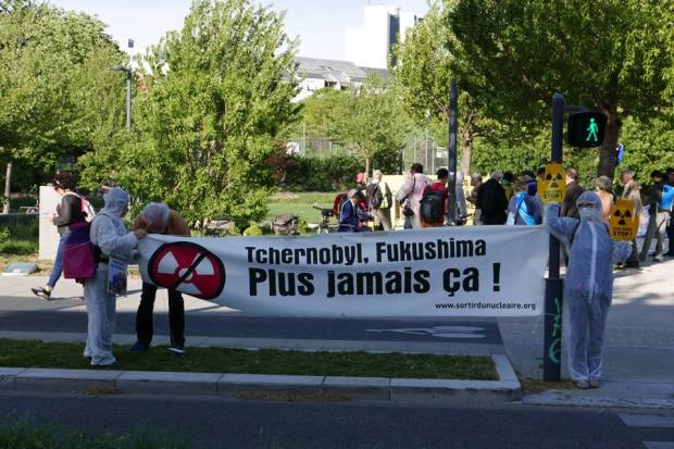 32 ans après l’explosion de son 4e réacteur, nous sommes rassemblés aujourd’hui dans le même élan pour dire STOP à la centrale nucléaire du Bugey d’EDF et plus largement au nucléaire.